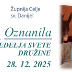 Oznanila nedelja Svete Družine27. decembra, 2025 Objavil Matej ob 27. decembra, 2025 Kategorije Mašni nameni Oznake 29.-12.-4.-1.-2026 Deli Matej Sorodne objave20. decembra, 202522. 12. – 28. 12. 2025Preberi več13. decembra, 202515. 12. – 21. 12. 2025Preberi več6. decembra, 20258. 12. – 14. 12. 2025Preberi več